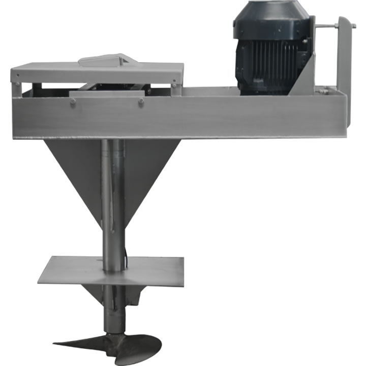 Agitadores para salmuera fabricados en su totalidad en acero inoxidable, propela de bronce, buje de bronce y poleas de hierro.